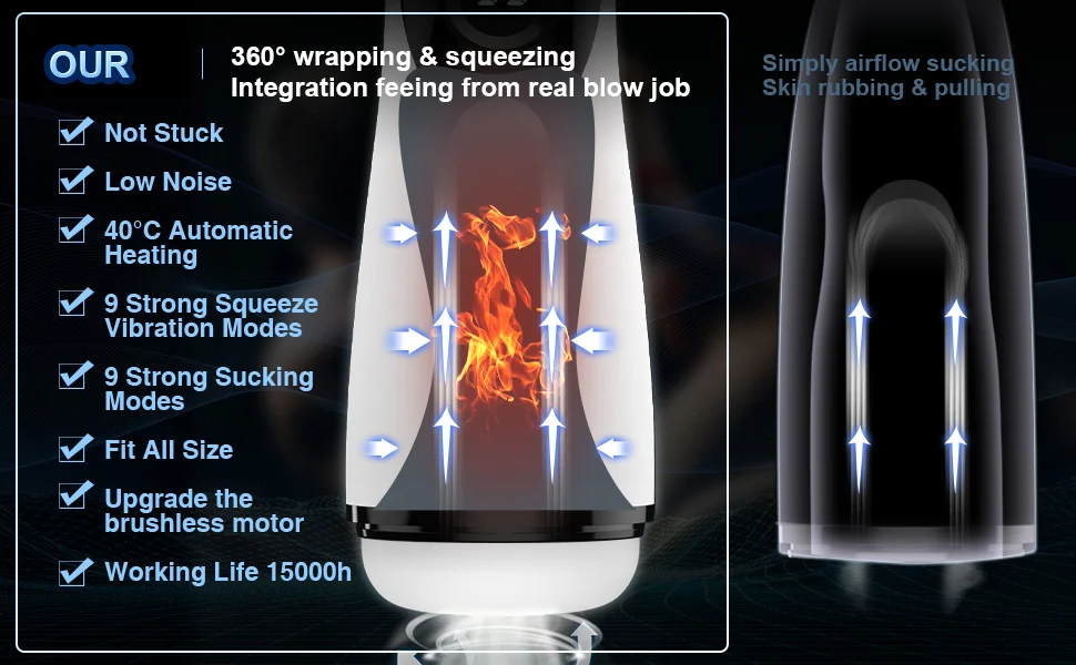 【Upgraded Male Masturbators Sucking & Vibrating & Heating Enhance Sex Experience】: Our male masturbator add powerful sucking & vibrating & heating functions together with overly soft and incredibly textured inside storker bring you different sensations to be excited in no time! Unlike traditional male masterburator toy that are always rotated or just inserted mechanically, this mens sex toys automatically heats up to 107°F for an authentic experience.